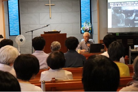 当時国民学校1年生だった森下規矩夫さんの映像も使っての名古屋空襲体験のお話しに、はじめて戦争体験を聞く学生さんたちも聞き入っていました。身近に戦争があったことを知り、自分たちのことを考えるきっかけともなっています。
