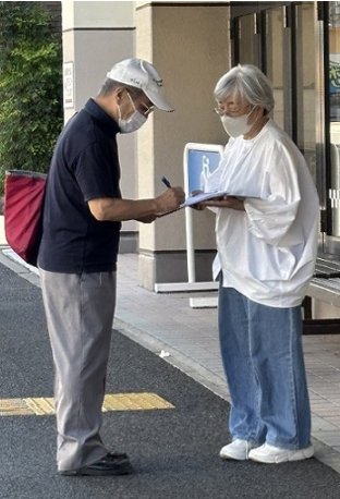私たちの呼びかけに「大丈夫です!」と行き過ぎる人たちの多い事!その後姿を見ながら「ハァ~」とため息をつくこともたびたびあります。そんな時、小学生の子ども連れのお父さんやお母さんが足を止めて話を聞いてくれるとそれだけでうれしくなります。