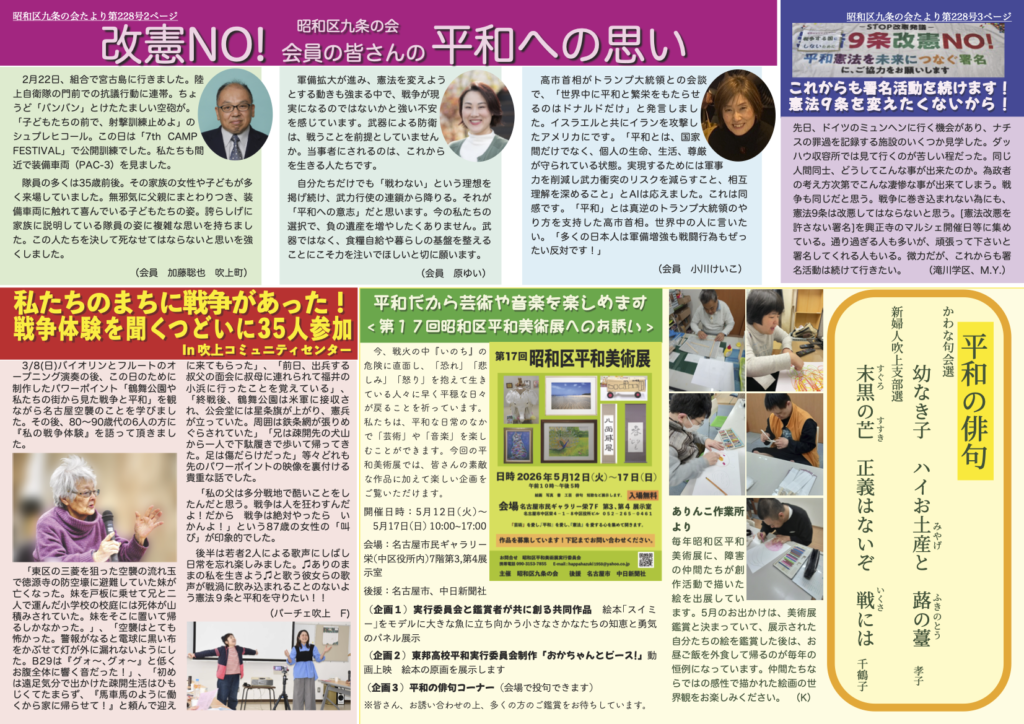 改憲NO! 昭和区九条の会会員の皆さんの 平和への思い